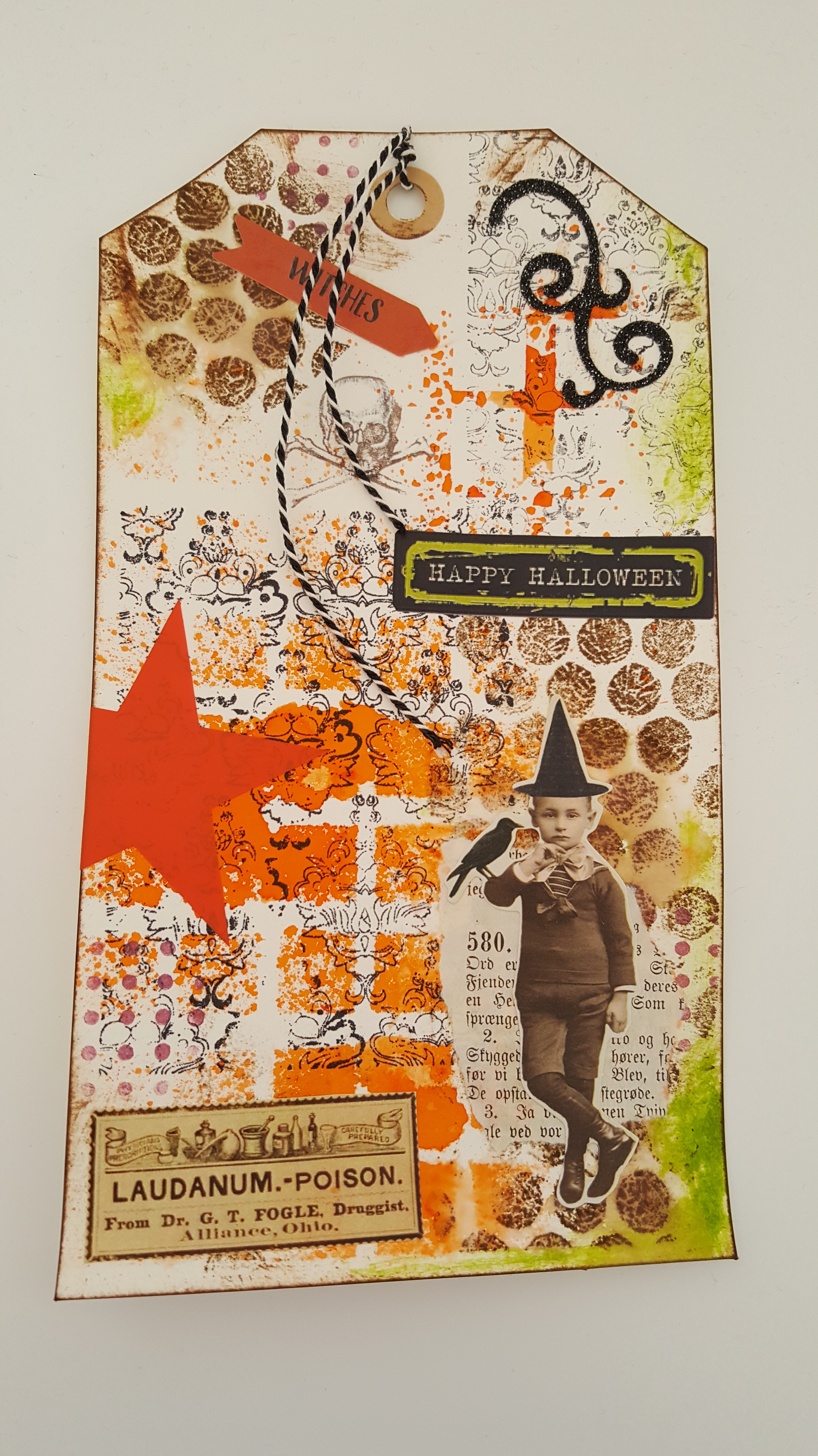 Jeg fik lavet et manilla mærke med Halloween motiv.
